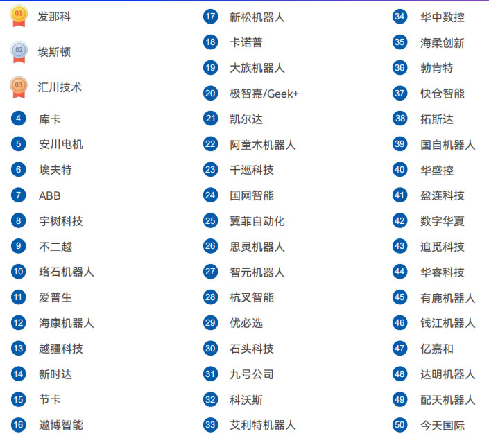 匯川技術(shù),珞石機(jī)器人,越疆科技,節(jié)卡,埃斯頓,遨博智能,埃夫特,?禉C(jī)器人,新時(shí)達(dá),大族機(jī)器人,阿童木機(jī)器人,新松機(jī)器人,極智嘉/Geek+